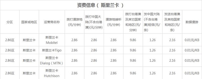 斯里兰卡属于移动国际漫游三元区。 拨打漫游当地,拨打中国大陆,漫游地接听都是2.99元/分钟;在斯里兰卡拨其它国家和地区(不含特定国家和地区)为3元/分钟;发短信到中国大陆1.29元/条;发短信至其他国家地区2.19元/条;接收短信免费。