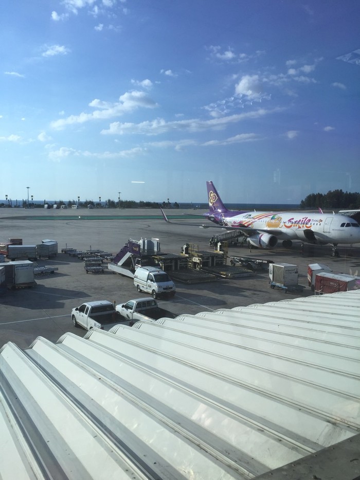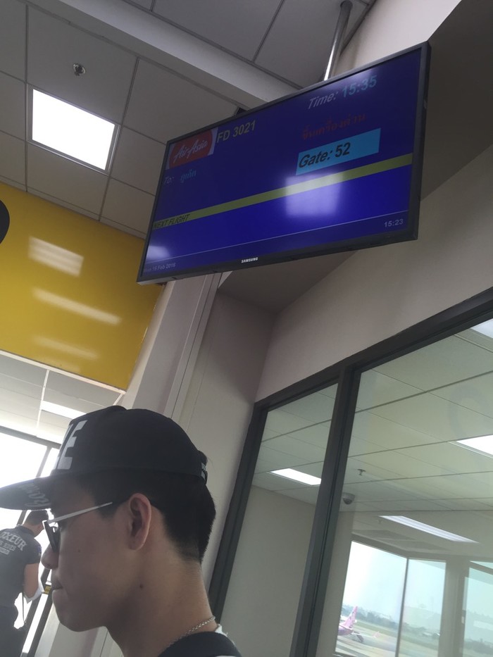 准备登机………期待下了飞机,想说换个散钱搭巴士,但大姨们都不给换…想买支水也不给换,就只能打的。见到同飞机的两个人也是打车到考山路,我们就拼车去,费用平分,我们旅馆比较近,先下,我们付了30软妹币给拼车的,我们没散钱,大概全程300猪,含50猪高速费。感觉廊曼机场好乱…找不到地方似的…
