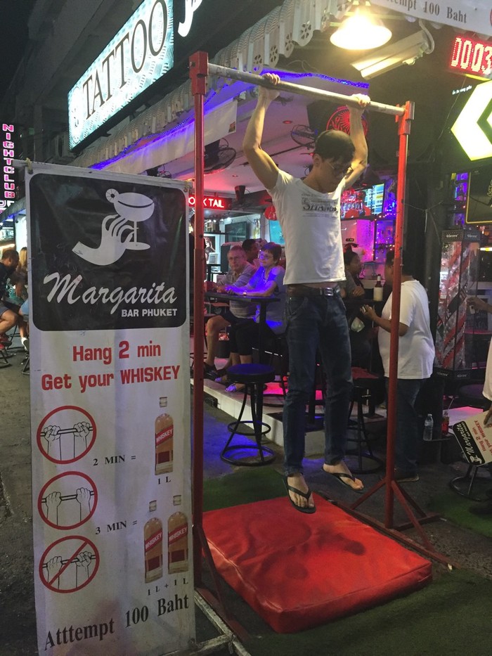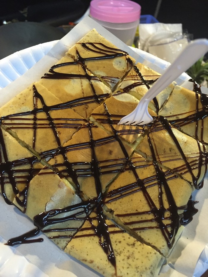 香蕉饼…80猪…然后我们在酒吧街外面的街逛…要买裤子…防晒霜…修复霜等等…明天准备出海…然后我发现…这里需要砍价…而且离酒吧街越远越便宜…我老公买给沙滩裤出价750然后300成交…我的在比较远买~人家出价100一条…我也就没砍~关于防晒霜…我做攻略时…听说要货比三家…的确价钱有浮动…但我发现…711的价钱是不变的…所以大家可以直接去买…