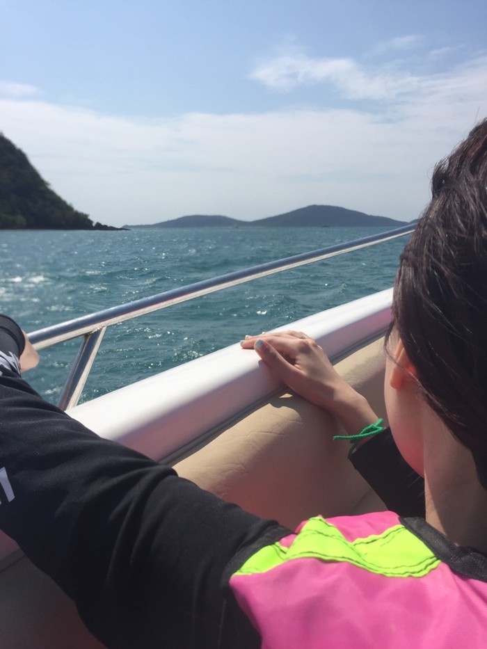 风景远没有想象的那么简单[微笑]船头加上我们,刚好3对情侣,气氛有点微妙,一对是中年夫妇,女的已经把她这几十年的财富都写在她肚子上了,一对是和我们差不多的情侣,感觉有点像韩国风,有点娘娘的摆pose类型,对了,这情侣和我们一样是广东人。出发不多久,就感受到快艇的颠簸,乘风破浪,是的,没错,理想与现实差距是有的,不过还是挺刺激。大海,啊大海~,船被浪撞击,坐船头就像不断滴玩斗牛机,知道什么是斗牛机吗?骑牛背上甩你下来那种,还不能下牛那种。重点来了,那和我们差不多的情侣,一看就是没有查过做出海准备,在坐船头的情况下,竟然就这样拿着手机,没有防水袋,赤裸裸拿着手机,有种!够格!所以又是不作死就不会死,还想在这情况下拍照于是,这一幕被我看到了,一个来自大海的波浪,造成船又是一个严重的颠簸,这美女一个自然反应要去用手抓稳护栏。嗯,是的,用她那拿着i6的手,撞击那护栏,幸运的是,手机没有喂海,这不过和泰国的人妖一样-弯了,又碎了。真是装逼过度了,又转到另外一对夫妻上,那女的已经不行了,骨头被撞得生疼了,横躺在沙发上,我真想告诉她,这会更疼,然而他老公全程看着她老婆在辗转反侧,到了下船那一刻,被她老婆骂:你看人家男的,都是扶着自己老婆,你看你#@*%*应该要分手了…