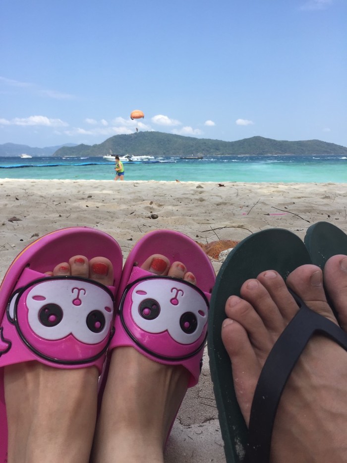 大概过了1个多小时…他们才回来…已经5点…要回码头…所以皇帝岛没玩过…即使有空玩也玩不了…下午2点多到达…太热太多人了…什么都要付钱…连遮阴的位置都没有…但皇帝岛的沙的确白…