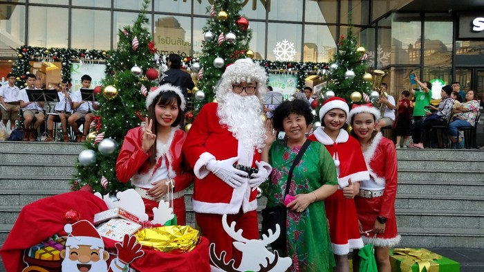 下面的图,是圣诞节的晚上,当我们准备从中央码头找酒店的免费摆渡船回酒店时,在一个大商场门口,又碰到圣诞老人啦!不是昨晚酒店那个圣诞老人。我们跟圣诞老人还是很有缘分,不论在哪都能遇到。