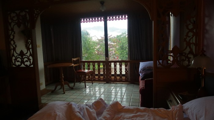 !那就开着灯睡吧,把房间里所有的灯全部打开。开了灯,亮堂了,胆子壮了起来。大堂的乐队仍然在演奏,靡靡之音一直延续到到约22:40才结束。而后,才是一片静寂。我一直到下半夜一两点钟才睡着。酒店的位置的确非常的避静,半夜可以听到非常多虫子和蟋蟀叽叽…叽叽…的叫声,这儿的夜晚还是真正的原始自然的夜晚。