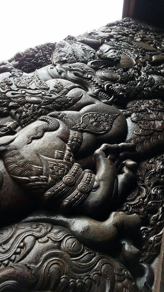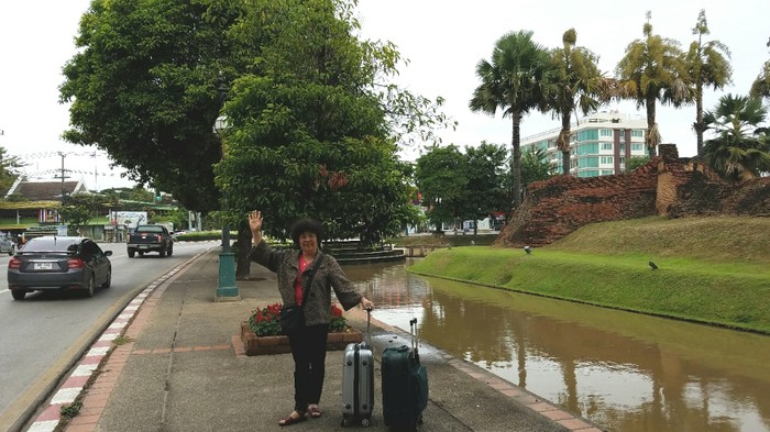 出来旅行第九天了,今天第一次遇到突突司机骗局。参观完帕辛寺,我想找一个当地市场体验一下,搜索一下,唐人街和瓦洛洛市场值得去,但都在古城外的东面。好象有点远为节省时间找了突突车,指着手机地图给他看,他拿计算器打了100给我看,我想100铢也不是很多,等于国内打的,还可顺便刘览下古城风光,于是答应了。这时过来好几个突突车司机,会一点中文,他们拿了各式游览图,要我去玩,我说,就去瓦洛洛。但有一个中文讲很好的,拿了一张图,说,你去瓦洛洛也不要玩那么多时间,那方向有个地方很好玩,看石雕,木雕,免门票,再加一百铢车费就可以了。我看了他的图,是很漂亮,路程很远,在清迈出古城再往东可能还有十来公里。我这人天性好奇心强,想想再坐车跑远一点也好,可以更多的了解清迈。还要路过清迈那条河,我真想看看清迈的河水是不是清澈干净。你看我们国内的桂林阳朔,那河水是不是太诱人啦?于是,再多100吧,回来时送我到瓦洛洛就好。