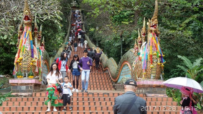 来到清迈,全城庙宇塔尖林立。沿途随处金光闪闪,金壁辉煌。仿佛西游记中唐僧孙悟空沙僧猪八戒一行四人来到西天取得真经回到大唐。莫非吴承恩著西游记中的西天就是此地?嘿嘿…
