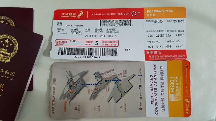 【这是第一次出国的第一件记念品:护照和深圳-曼谷素万那普机票