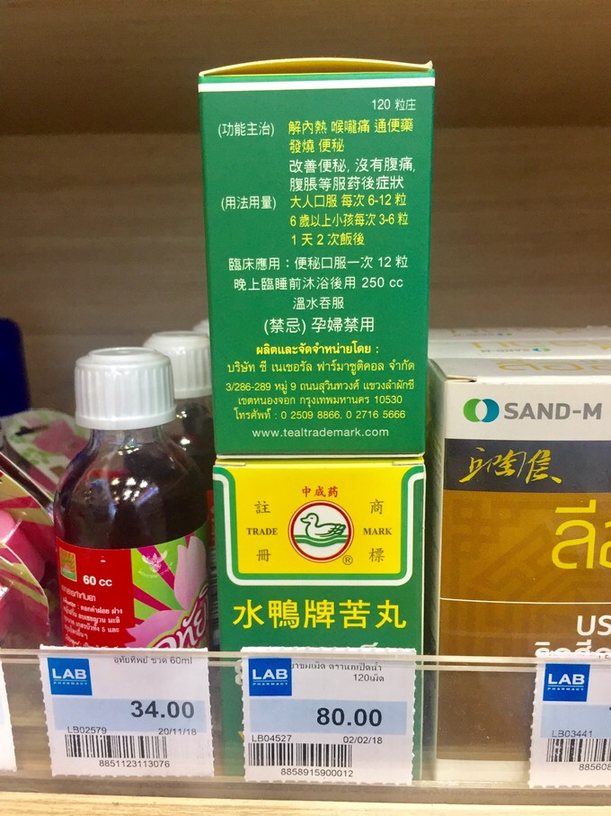 家居良备!降火神器--泰国水鸭苦丸120粒/瓶,功能主治:解内热,喉咙痛 ,清肠毒,发烧 ,便秘小孩也可以吃[强]药量减半哦,不愧为居家必备良药!