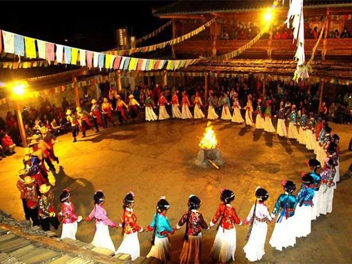 晚上还有丰富的活动:村民列队欢迎,喝拦门酒;观看当地民俗表演;体验千人摔碗酒的豪情快意;加入万人篝火摇滚音乐会,一起载歌载舞,度过一个不眠的尽兴之夜。