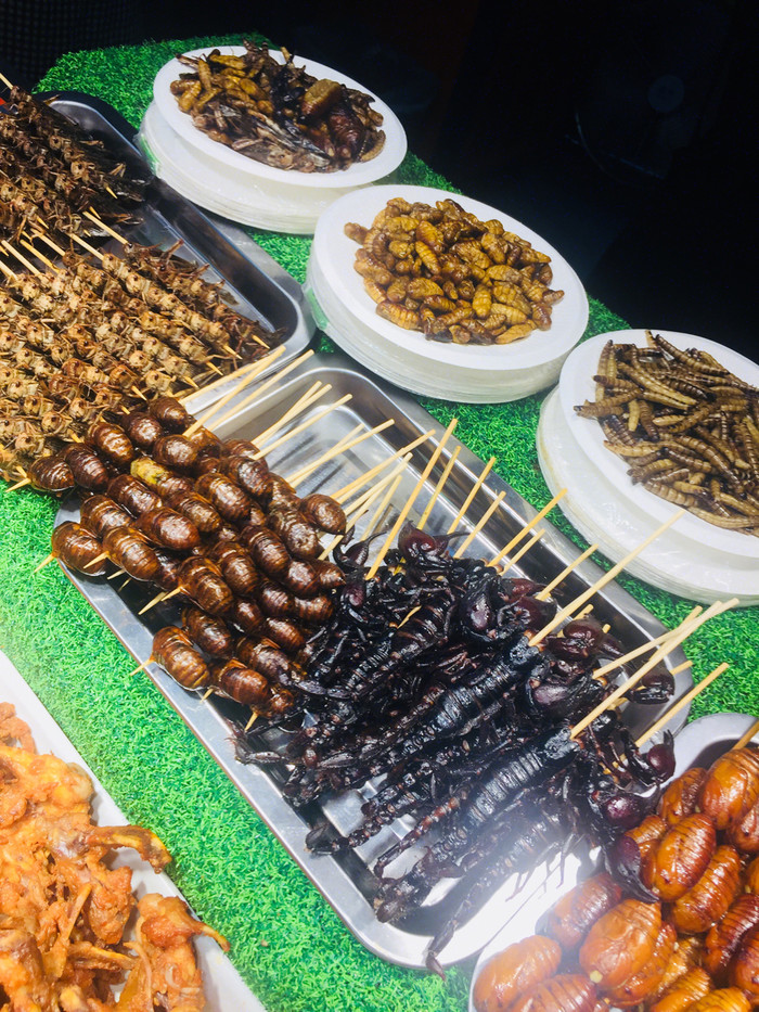 在泰国,昆虫已逐渐从过去穷人的充饥食物演变为美味健康的休闲零食。除了可以在大街上买到作为零食以外,人们还可以在菜市场买到新鲜的活虫自己烹食。所以胆子大的你可以来尽情的发挥你的胆子。