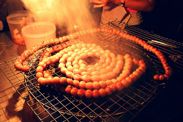 酸肉起源于泰国东北,将猪肉和糯米混合,待发酵后拿到炭火上去烤。大部分人在刚吃时会对那微酸的味道非常不习惯,以为吃到了腐坏的香肠。