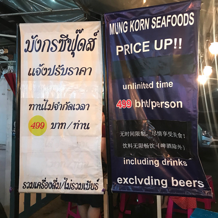 价格:699 泰铢,不限时随便吃再无其他额外收费