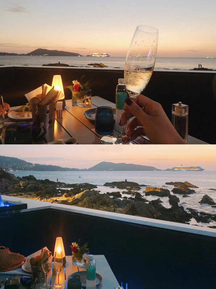 坐标 普吉芭东海滩 附近大大小小挺多个海边餐厅的~ 但这家Sunset Bay地理位置最好,景观最美,装修最简约高档。网红店最怕的就是照骗,但是它真的不会!点完菜就可以开始拍照了,很好出片大片的落地窗,窗外是礁石与大海。全景观 无遮挡!不得不感叹日出日落 云卷云舒 潮起潮退这些美景都是大自然的馈赠……
