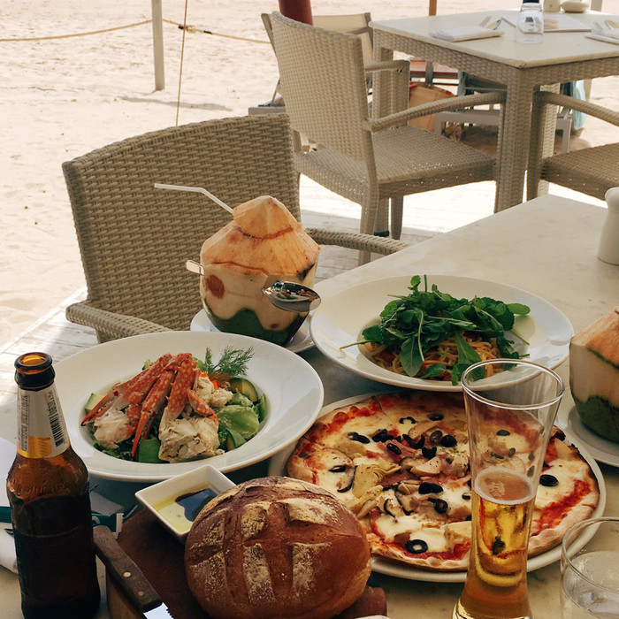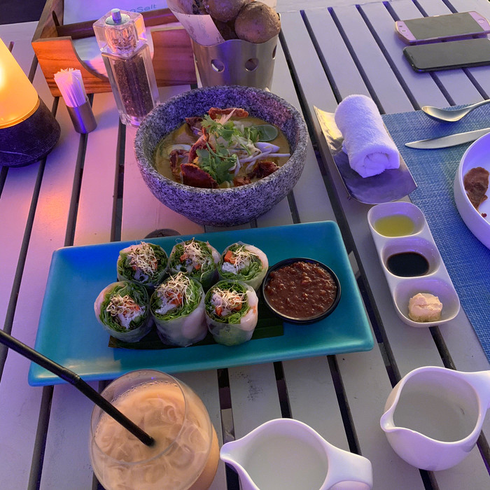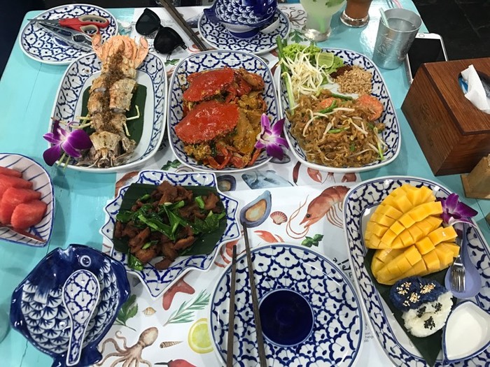 靠边的位置可以欣赏到开阔的大海,餐厅五点营业,建议提前预约。因为五点半左右餐厅已经几乎满座了。但是这个时间点正好一顿饭的时间可以欣赏到日落,夕阳染红天际的景色尽收眼底 非常美!菜品也毫不逊色,大部分都是地道的泰式料理。