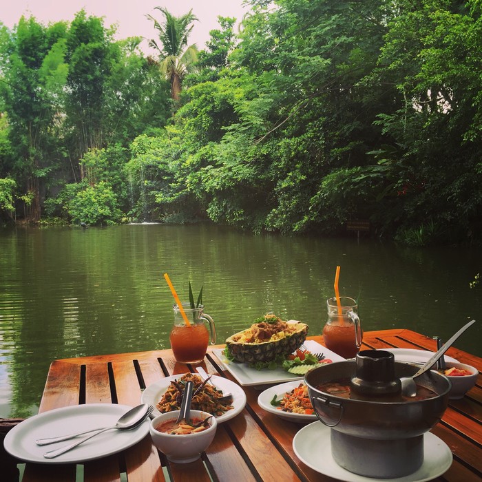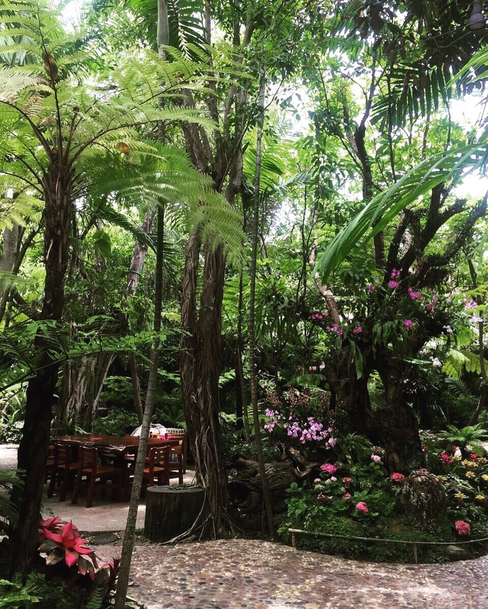 清迈必去餐厅推荐,犹如仙境般。超大的餐厅,室内外开放式的,真的就像个森林,有一个大湖,还有各种小瀑布溪水漂亮的花花草草,在里面用餐好享受,就像在画里一样~