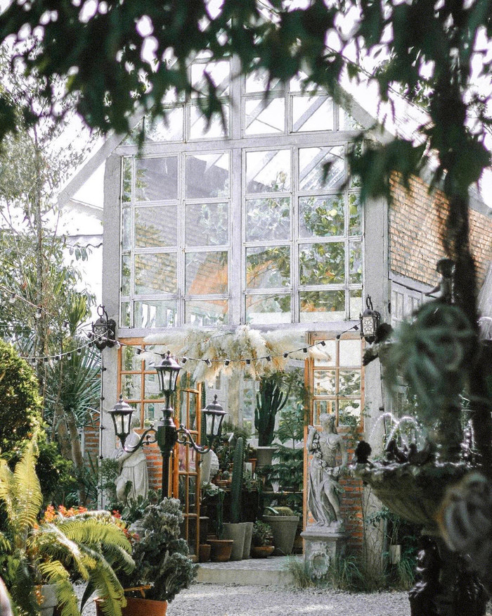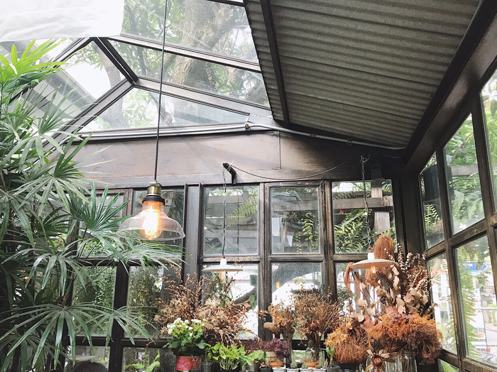 外面看店面就是个温室玻璃屋,光线充足,装饰清新。温室环境温度舒适凉爽,让人非常的放松。