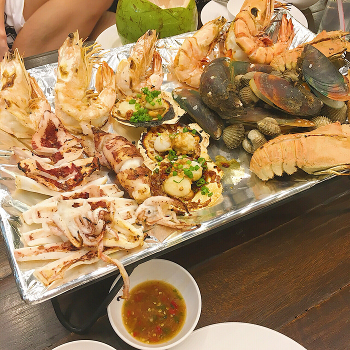 作为一个资深吃货,有家海鲜自助餐一定要分享给大家,曼谷有很多海鲜自助餐,299到799价格不等,低于500的海鲜自助餐就不推荐了,虾和蟹要么很小要么不怎么新鲜,吃货都知道只有大虾大蟹才有瑕膏和蟹黄,好东西呀好东西,很多人推荐taikong海鲜自助餐,到个人而言,taikong价格偏高,位置较偏,作为一个曼谷老司机,这家一定是吃过性价比最高,地理位置最方便,服务最好的,所以强烈推荐大家。