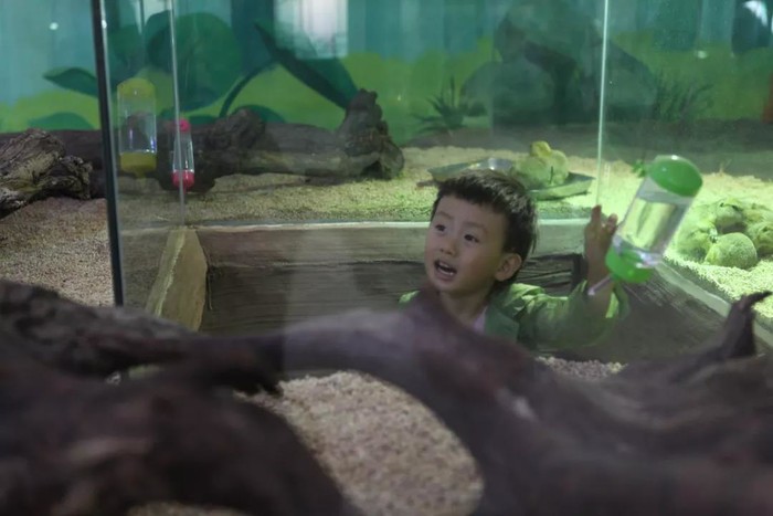 在我的印象里,有动物的游乐园一般都是会有一些味道的,但是这里却截然不同,没有异味而且非常干净,园内的讲解员也是随处可见,一进园便接待了我们,给我们介绍园区,路线。室内萌宠的讲解员告诉我们每天他们都会对萌宠们进行消毒,并配备了驯化师,可以大大保障孩子们的安全与健康,让孩子们更自在的玩耍。观看土拨鼠时,有一个小朋友想把手伸进去和小动物一起玩,被讲解员温柔的阻止了~我们都吓了一跳,要不是讲解员及时阻止,说不定意外就发生了。室内萌宠住在一个四方的玻璃屋里面,可以全方位的观看,再加上讲解员在旁边的耐心陪伴,整个过程孩子们的安全都可以保障,这里不仅室内有萌宠,室外也有,在这里动物们走出围栏,可以和孩子们更近距离的接触。