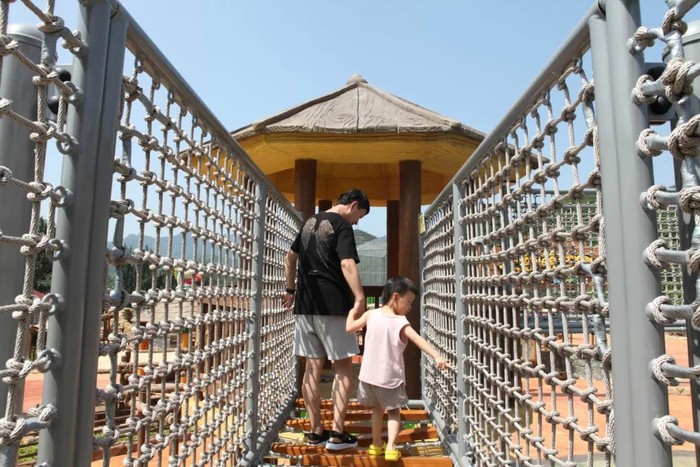 园内的配套设施非常齐全。走累了有休息的地方,就连餐饮中心还贴心的设置了儿童餐厅,餐厅多为木质构造,古色古香,既干净又上档次,在这里用餐真的很舒服,我们一家人中午在这里吃的很满足,下午准备去看看这里的游乐设备。