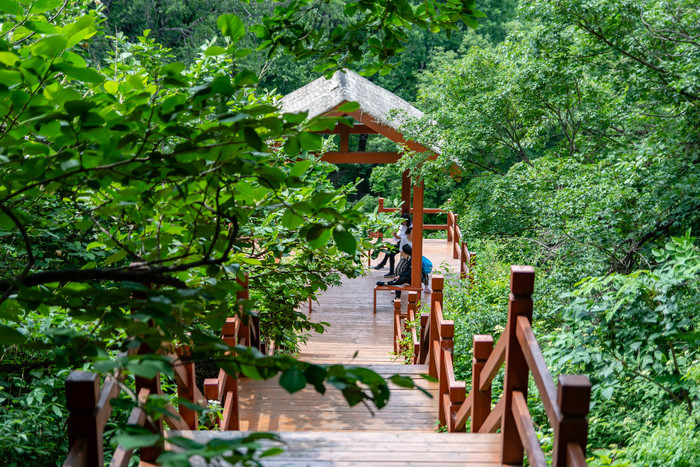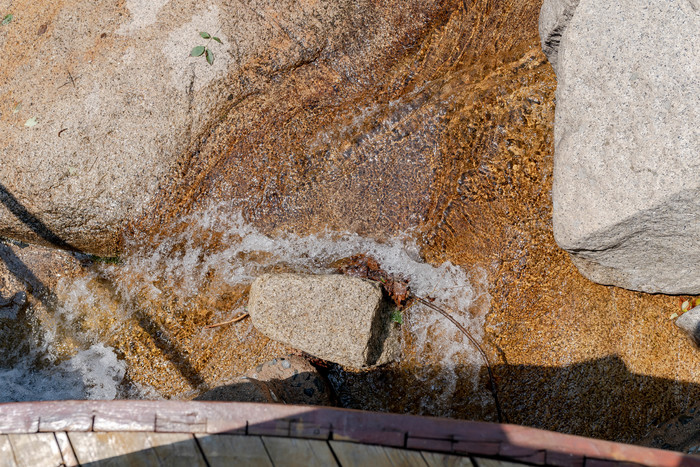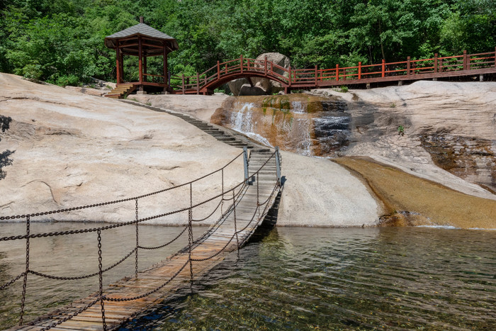 不一会儿,我们就随着人流来到了忘忧谷。潭里的泉水不似瀑布那般壮丽汹涌,它们是柔情的、潺潺的,流漫过石块,灵动且清丽。