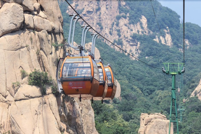 从忘忧谷出来,顺着石阶走了一段,便可以乘坐缆车前往山海禅寺了。