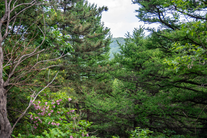 从山海禅寺出来,可以选择爬天女峰,亦可以选择观赏木兰花。因为,正值木兰花的花期,我们乘坐巴车前往木兰盛放的北天门方向,再经由旁侧小道便是那惊羡旁人的天女木兰园。