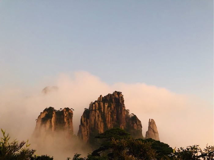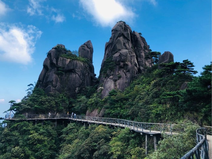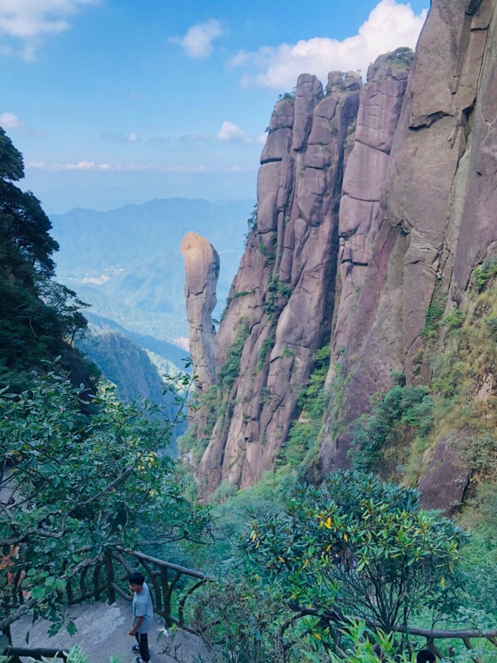 禹皇顶有公共厕所,服务点。可以看到巨蠎出山的样子。到了秀峰看了看风景,吹了吹山风。够凉快的。接下来走的都是高空栈道。步云桥-白头偕老-国舅栈道-母子石-乾坤台-渡仙桥,走到郁松林,这是一个还没有开发过的宾馆。可以当营地。有公共厕所,而另一条路就是往三清宫去的。想着看日落,直接走西海岸的路线,也是高空栈道,龙王嫁女-妈祖神像-飞仙谷有个公共厕所-观音送子-海誓山盟-迎客杜鹃-七夕双星-西霞港有个服务点-西海岸记直到日上山庄。