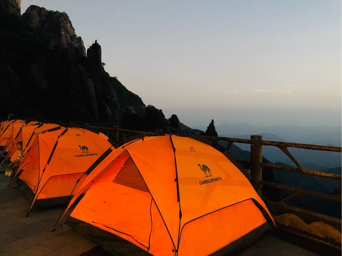 早上4点不到,匆匆忙忙起床,帐篷可以直接离开,不要去前台,不用押金。背着包,收拾一下直接往玉台去看日出。
