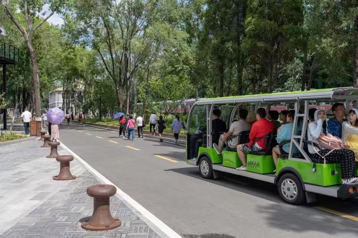 花园内禁止汽车通行,只能乘坐景区的观光车代步,在这儿散散步,吹吹风可谓是相当惬意。