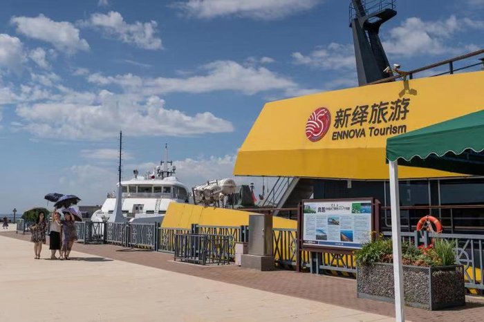 “寻仙号”游船位于秦皇岛市西北处,一般从西港花园内的码头出发,最近刚开启的新航线,可以从西港花园直达东山码头。