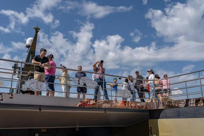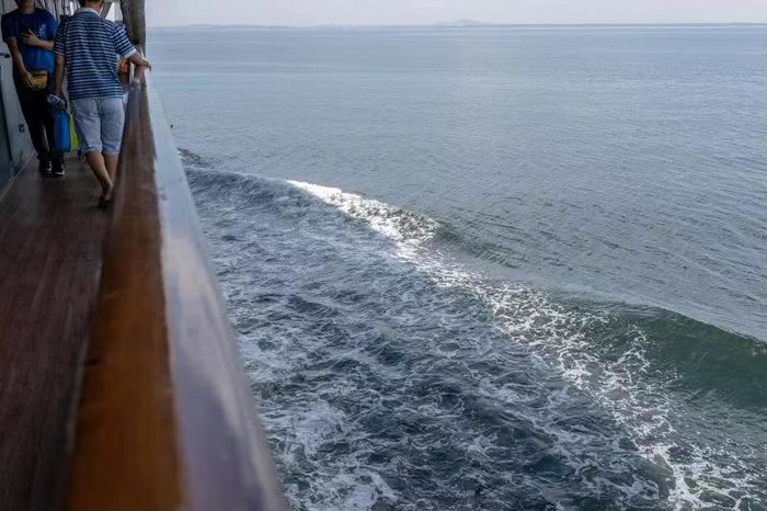 在甲板上呆久了,强烈的阳光经海水折射,刺激眼睛略有不适,十一假期要来海边的游客们一定要记得带墨镜啊!