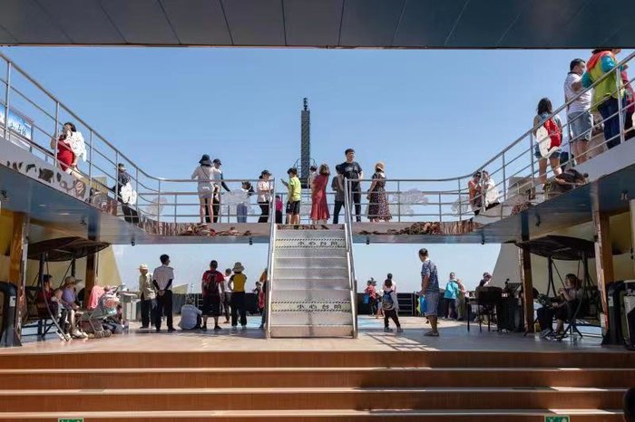 恰逢公司受邀,拿到几张免费的“寻仙二号”游船船票,上午十点开船,不能乘船看秦皇岛的夜景,有点小小的遗憾。和同事们一起,驾车从市内出发,前往西港花园。跟着导航走了二十几分钟,上一座心形的立交桥,沿左手边的岔路走,前方西港花园进入视线。