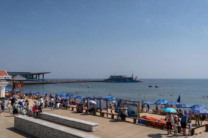 船速变缓,东山码头在视线中渐渐变大,沙滩上错落着一顶顶遮阳伞,小小的人儿在伞下舒展着身体,放松着心灵。初秋的海风,是抚慰人心最温柔的双手。漫长的海岸线,像是张开的双臂,拥抱着大海,也迎接着来晒太阳的人儿。