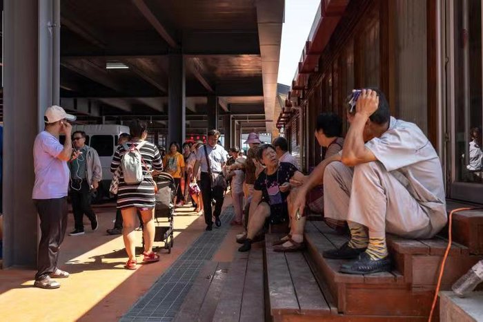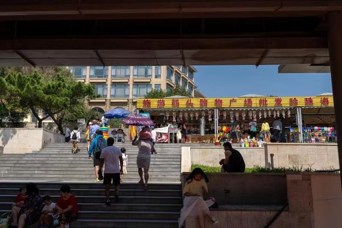 离开这里,上至三层是露天观景台,轴对称设计,充满方正之美。大部分游客都聚集在这里,大人们三五成群地拍照,小孩子们则撒开了腿,嬉笑追逐,稚嫩的脸庞,没有烦恼,最简单,最纯真,也是大人们最渴望,最难实现的。