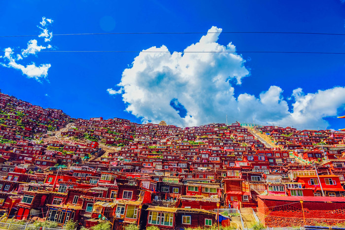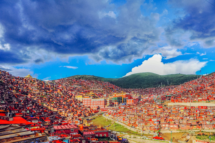 喇荣寺五明佛学院是 色达 县最为辉煌的名片,它毫不费力的将 色达 这个偏僻的县城,轻而易举的覆盖住了人们的眼神,带入了世人的内心中。使用的手法,很粗糙,但是显示的效果,很震撼。