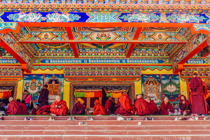 上挂下连,绵延不断的小木屋,见缝插针般地在此进行着“圈地运动”,它们以层层磊叠的方式,日积月累地叠出了佛界疆域的接天连地感,正是此种外在的挂相,让 色达 佛学院成了宁玛红教的佛缘置顶地。