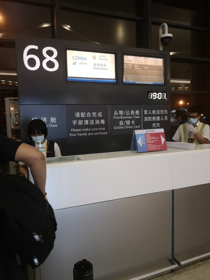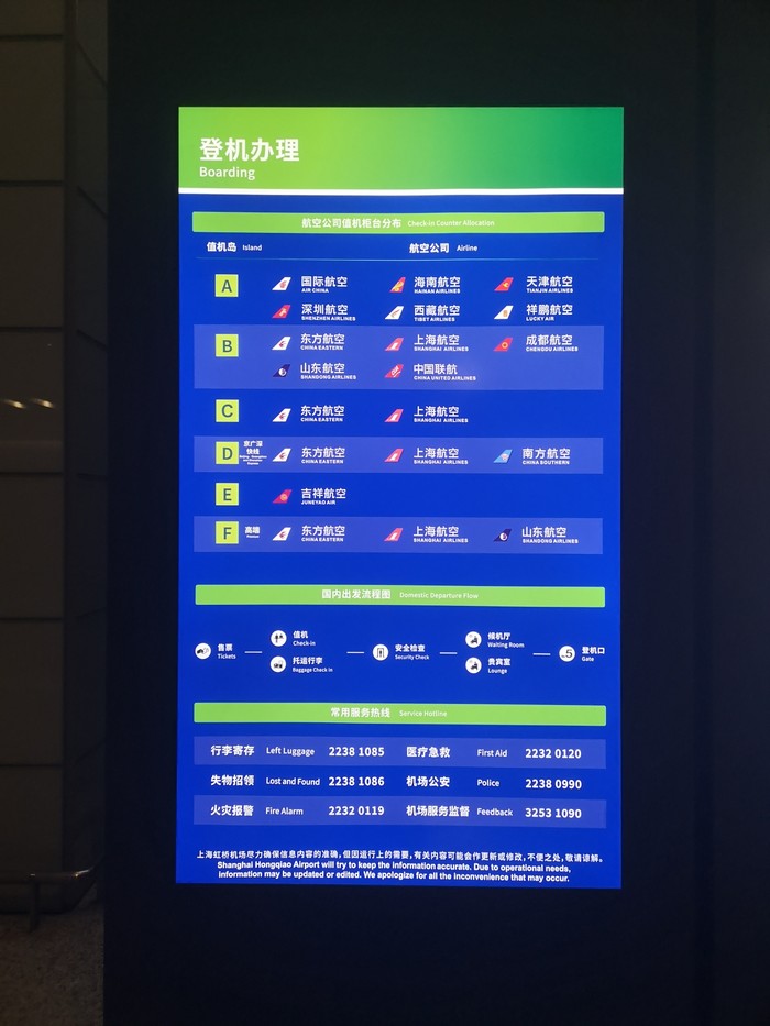 南航值机柜台在D10--D21。其中经济舱在D11--D16办理。只有6个柜台办所有的南航航班。所以排队时间相当长,排了大概半小时才托运完。
