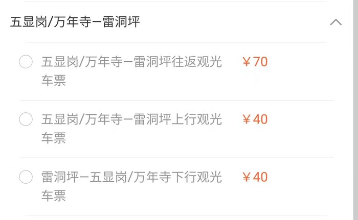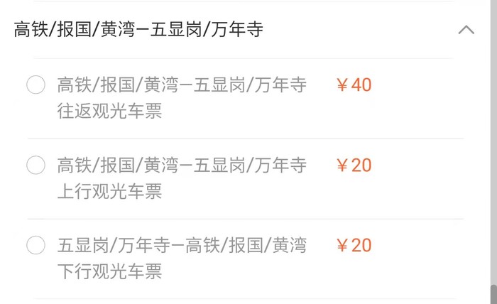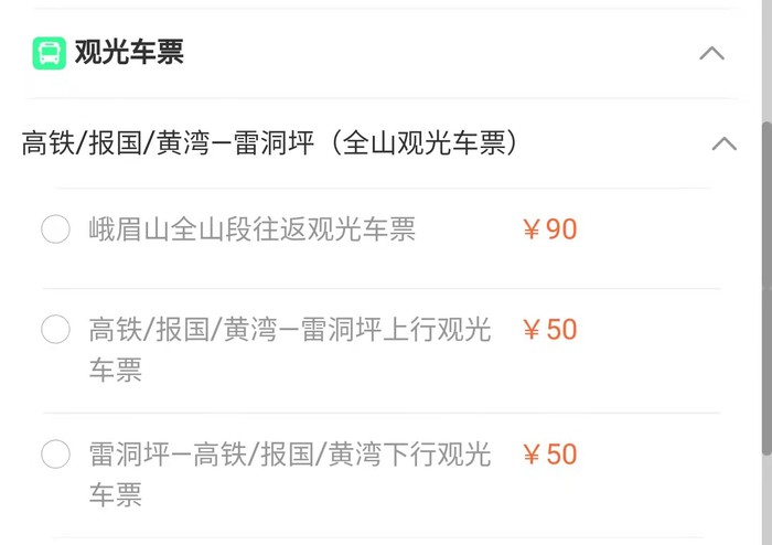 (1)、全山段+往返+观光车票,90元(学生证不打折)