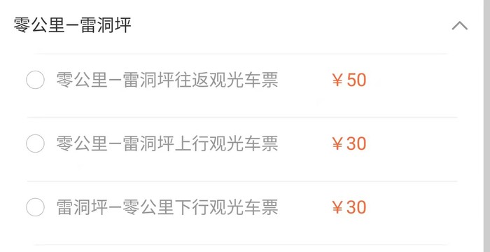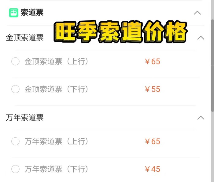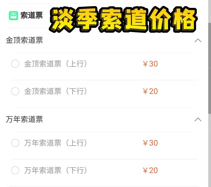 (3)、全山段+单程+下行+观光车票,50元(学生证不打折)