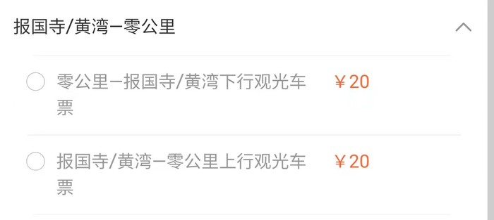 (2)、全山段+单程+上行+观光车票,50元(学生证不打折)