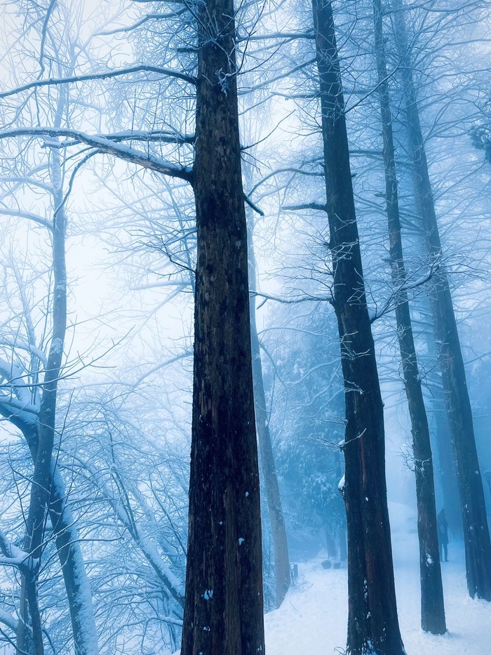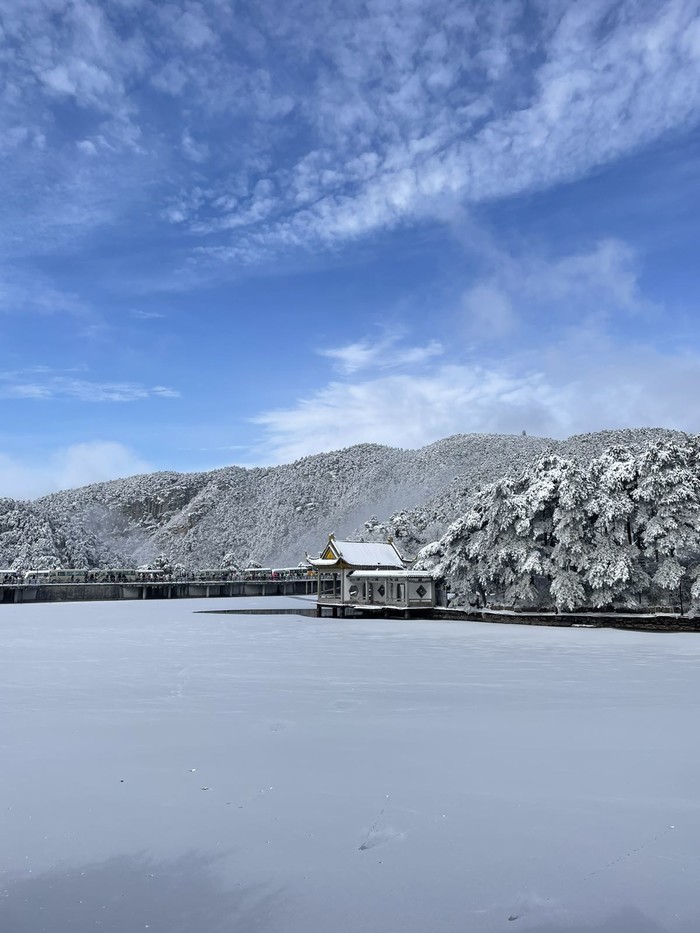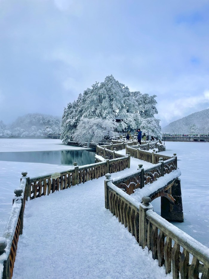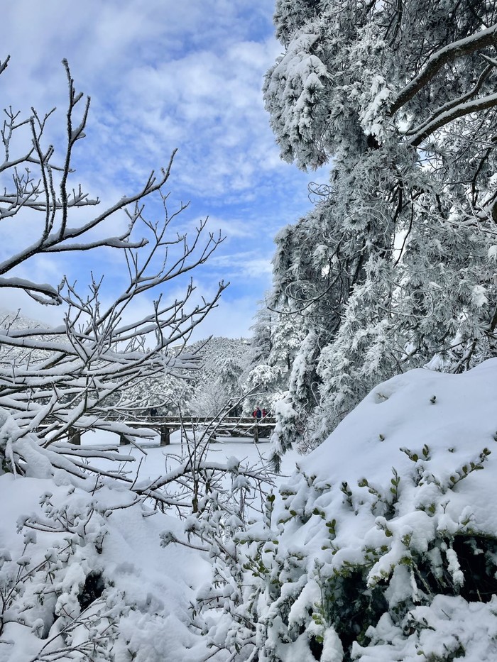 2. 冬季下雪很多景点会关闭,观光车不开进景点,比如西线观光车最远只到如琴湖,东线最远只到庐林湖,北线只到小天池。但是到如琴湖附近还可以往下走去仙人洞等吗,但是不推荐,下仙人洞半小时左右而且冬季基本都是大雾,什么都看不到