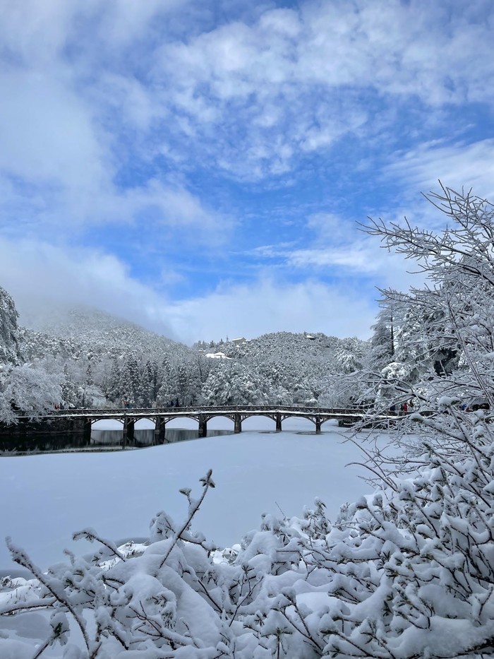 5. 冬季景点(默认有雪情况):街心公园(牯岭镇市中心,有雪有雾:百搭啥也看不到;有雪没雾:北欧小镇)如琴湖(西线离市区很近可步行,没雾很美,晴天绝美,有雾啥也看不见)锦绣谷(没鞋钉不能进,很多猴子,也挺好看的,一直往下走可以到仙人洞,但是冬天没必要去啥也看不到还累)美庐别墅(以前国共领导人度假地方,东线离市区很近可步行,别墅可以进去就是小型博物馆)庐林湖(东线有点远不建议步行,水不结冰,很像小西湖,景色很好,在庐林大桥上可以看到两种截然不同的景色)小天池(强烈建议,有点远,其他景点都是落雪,这里是冰挂,眼睛看着很震撼,有100 多个台阶,爬上去不累,但是需要提前有钉鞋保证安全)滑雪场(今年没开,据说是管理太差,在小天池附近)