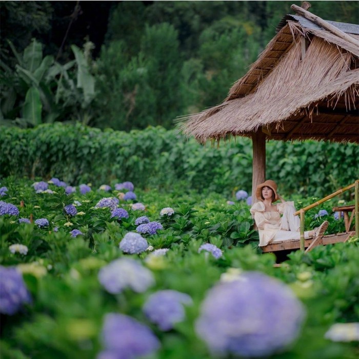 离清迈市区约100公里,这里是由政府主推的皇家项目,种植了水果、蔬菜、花卉、草药等。每年的10-次年3月份是欣赏绣球花最好的时期,门口还可以租借装满花球的背篓。
