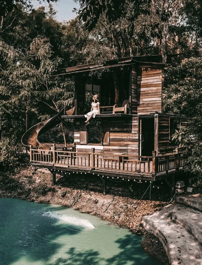 Jungle de Cafe在清迈有很多家分店,这家位于清迈湄登的山里,依山傍水而建,景色美丽,不管是水中的秋千,水边的鸟巢沙发,还是树丛中的木桥,都非常适合拍照。咖啡馆附近还有大象营、漂流和露营地。