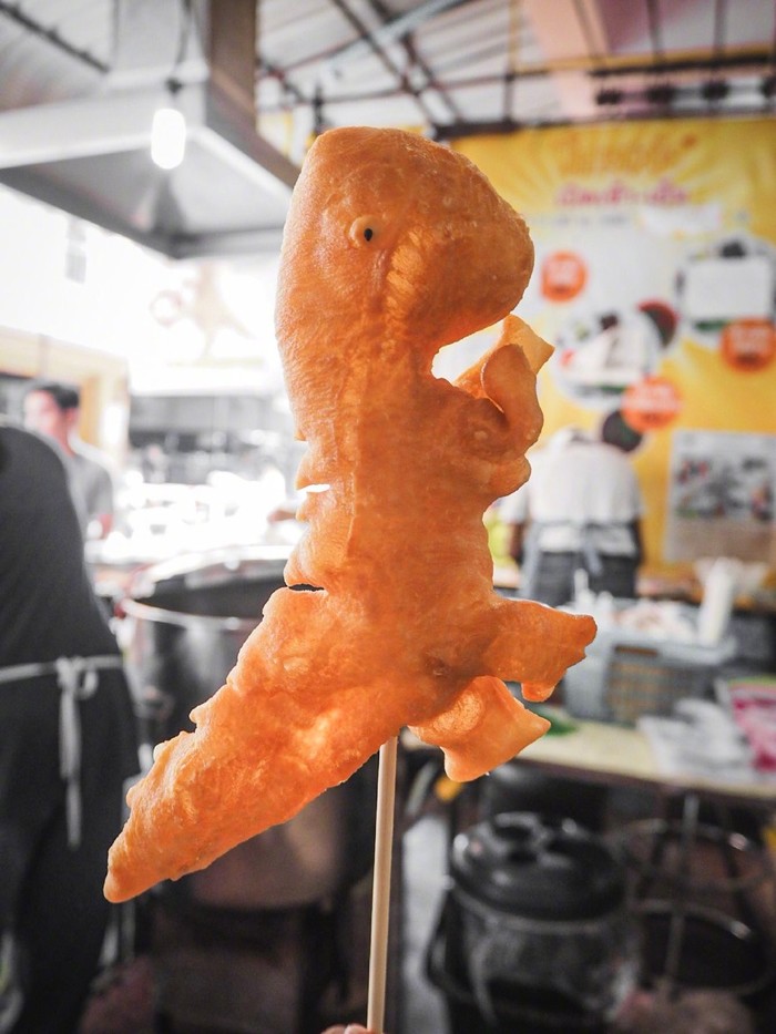 清迈的超人气豆浆油条早餐店,这里的油条独特之处在于它的造型,有恐龙、龙、鳄鱼和大象等。依照造型的复杂程度有不同的价位,平均一条约20泰铢。