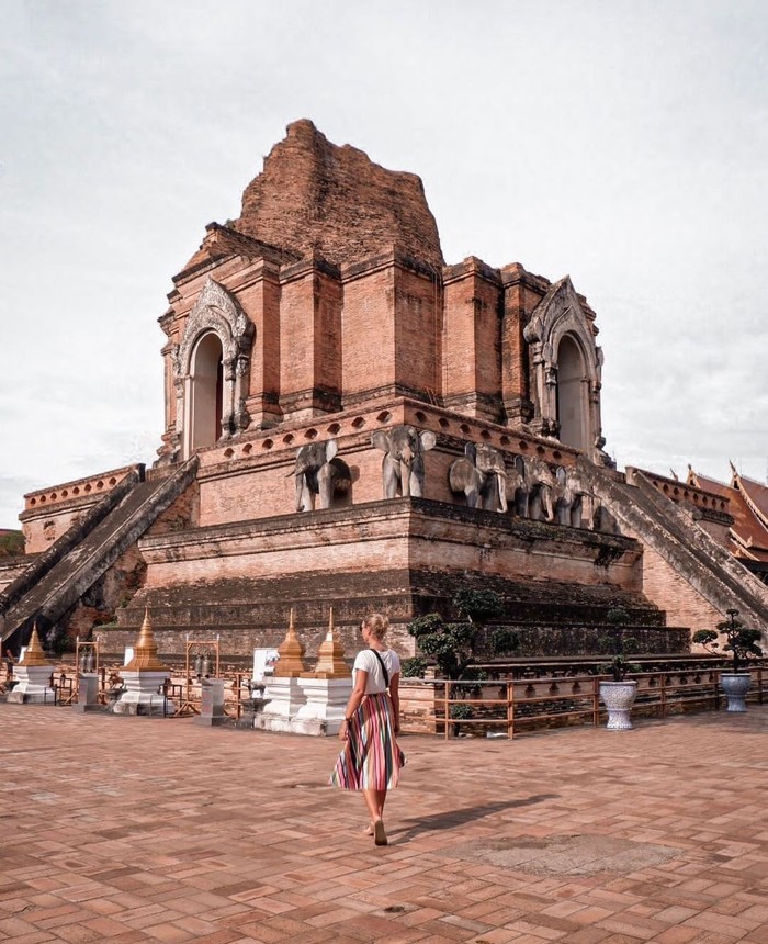 寺庙内最令人震撼的古佛塔,位于正殿的后方,同时也处于整个清迈古城的中心位置。