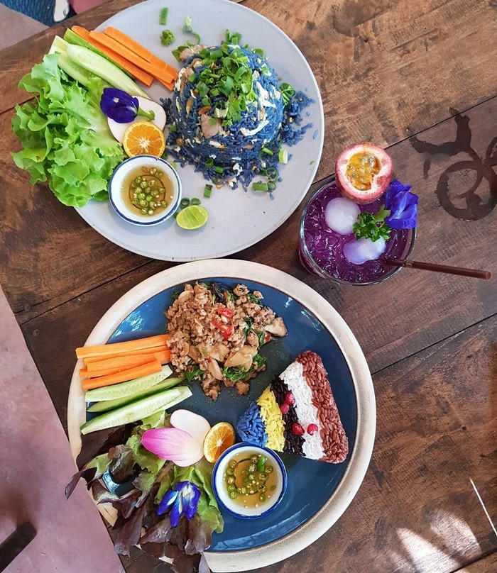 一家以五彩米饭出名的餐厅。虽然位于市郊,但也挡不住美食爱好者们的热情。五彩米饭的不同颜色是由新鲜蔬果汁制作而成,每道菜的摆盘都很精致,令人忍不住掏出手机拍拍拍。