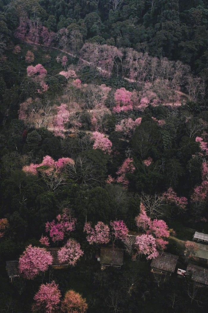 离清迈市区最近的赏樱胜地,这里的樱花树遍布山谷,湖边、路旁、屋后…每年的12月底到来年1月是樱花的花期。推荐早上去,天气最好,适合拍照。周末的时候,车多人多,能避开的最好避开,最好是工作日时间前往。