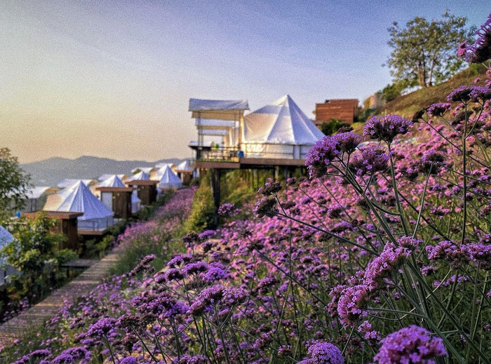 位于清迈府Mae Rim县Mueang Kaew区,花园占地面积8亩,有柔和的白色小雏菊、绚烂的紫色薰衣草,以及淡紫色玛格丽特在多个品种的花卉。
