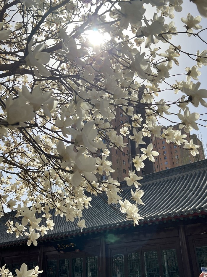 之所以想起参观四塔,要从这一株玉兰说起。四月春风拂面,偏又多次被这株正在盛开的玉兰刷屏吸引,百无聊赖便驱车前往——北塔。