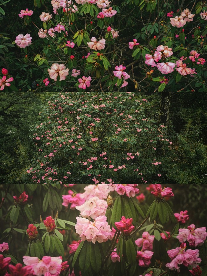 从山脚乘坐金花桥索道(约15分钟到达半山古佛坪)——再乘坐古佛坪索道(约10分钟到达山顶,欣赏杜鹃花海)